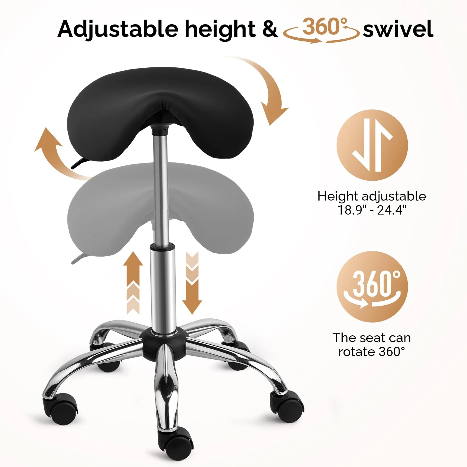 OmySalon Hydraulic Adjustable Rolling Saddle Stool with Swivel Wheels