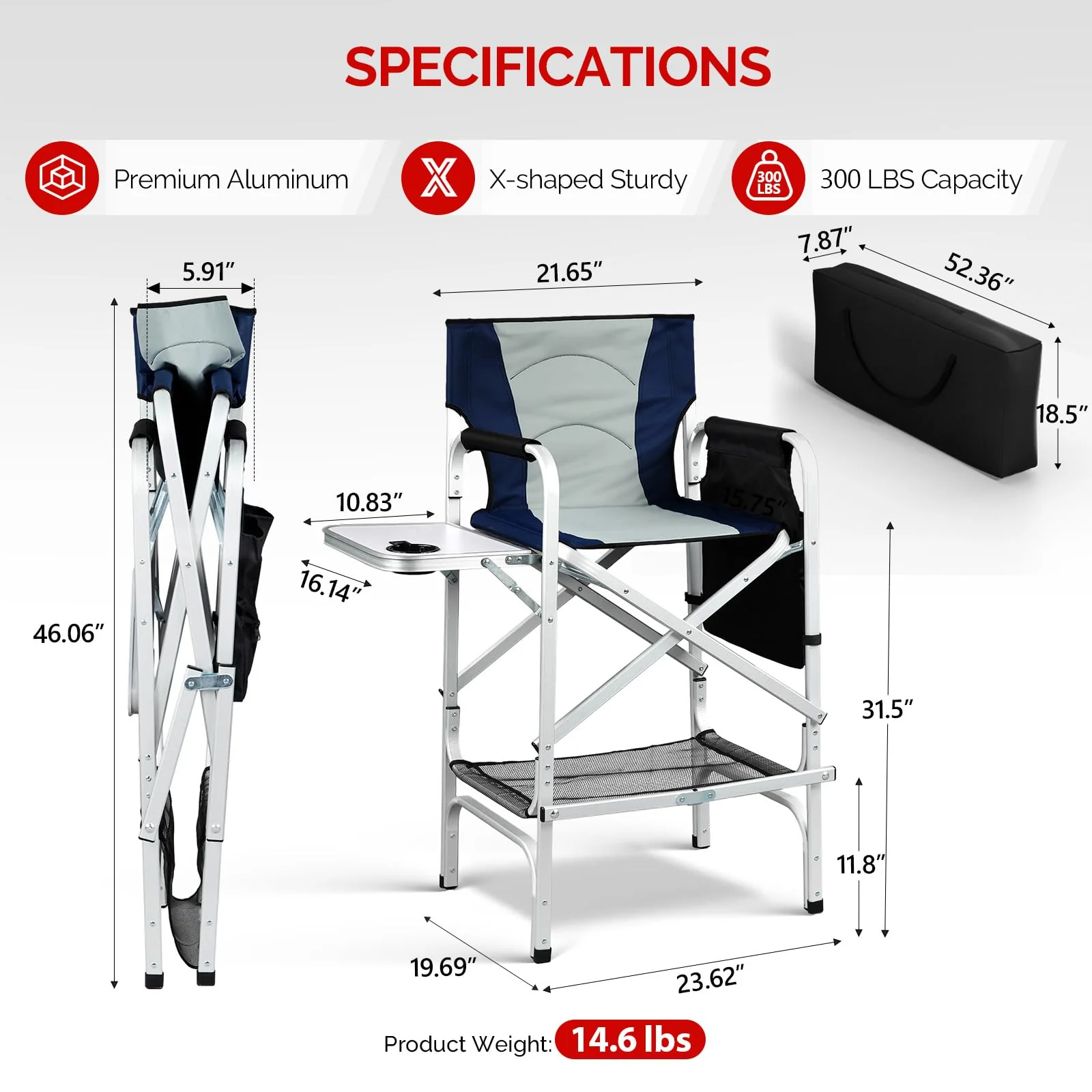 1.【Heavy-Duty & Stable Aluminum Frame】- Built with a robust yet lightweight aluminum frame that reliably supports up to 300 lbs, this chair is made to withstand daily professional use in salons or on set. Its rust-resistant properties make it suitable for both indoor and outdoor environments.