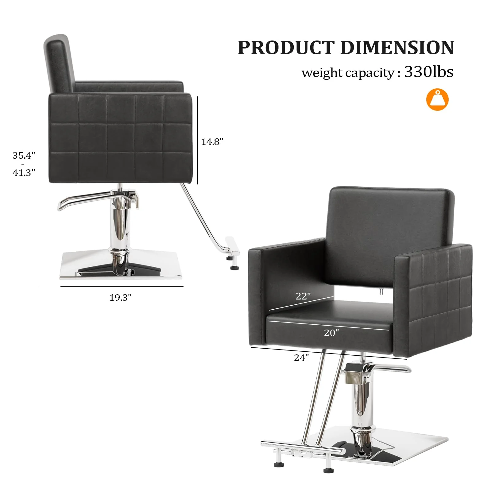 1.【Sturdy & Durable】- Crafted with a heavy-duty hydraulic pump and stainless steel construction, this salon chair ensures exceptional durability and resistance to damage. Its heavy-duty square base, measuring 19.3 inches, outperforms ordinary chairs, providing superior stability and support. Maximum Weight Capacity: 330 lbs.