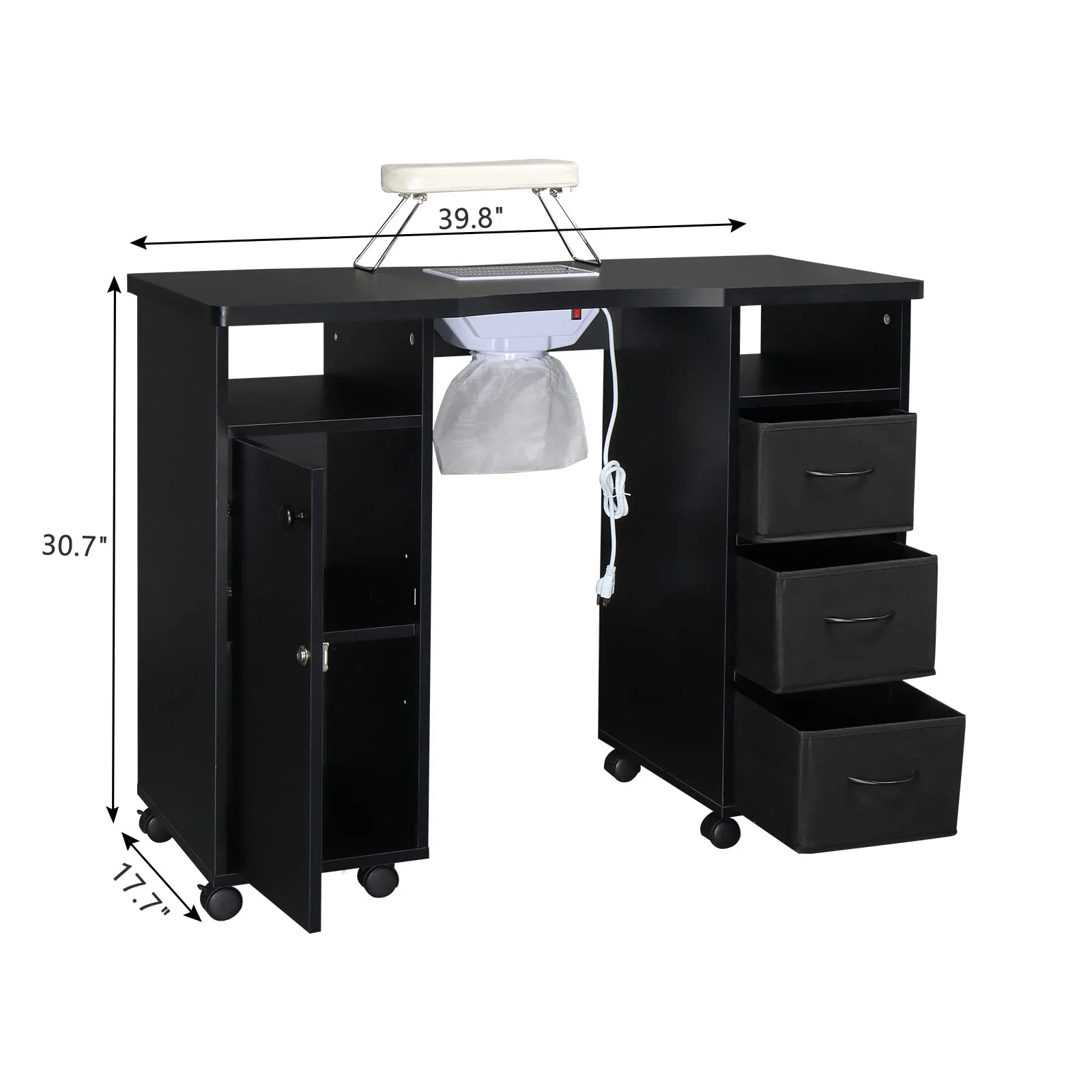 OmySalon Nail Manicure Table w/Electric Dust Collector & Wrist Rest & Double Cabinet 1 Door 3 Cloth Drawers