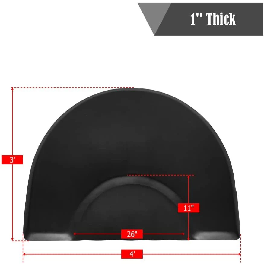 2.Large: This 3’x4’ semi circle salon mat provides large standing area for hair stylist to do daily work. 26’’ x 11’’ round cutout fit for most barber chair base.