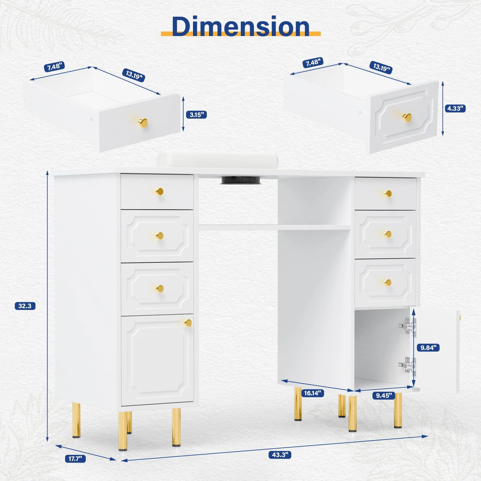1.【Elegant French Luxury Design】- Boasting 3D carved panels, a sleek matte finish, and opulent gold hardware, this manicure table features a French-inspired aesthetic. Its statement-making gold legs further elevate the overall look.