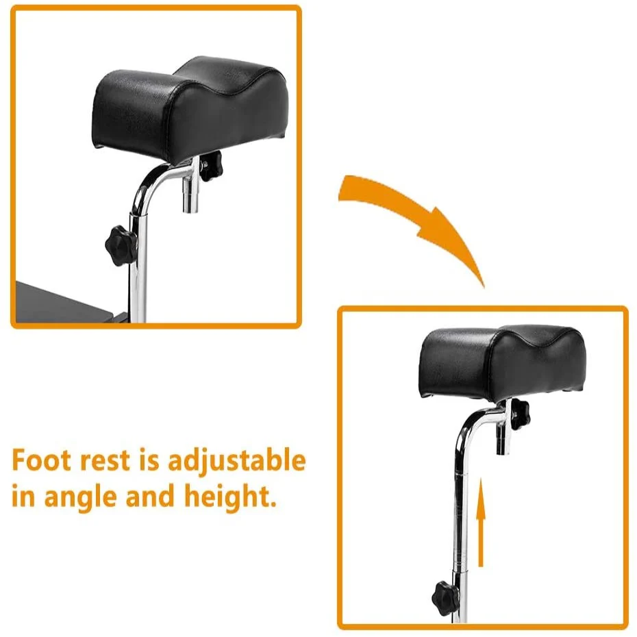 2.【Retractable Foot Rest】- The footrest is retractable. For tall clients with longer legs, the distance between the chair and footrest can be extended, and the footrest can be lowered or raised to suit individual needs.